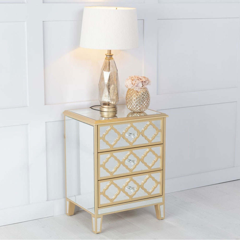 Marrakech Mirrored 3 Drawer Bedside Cabinet with Gold Trim